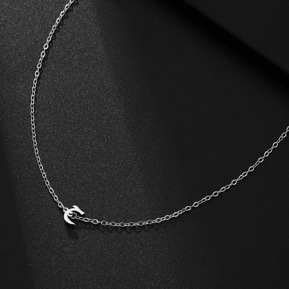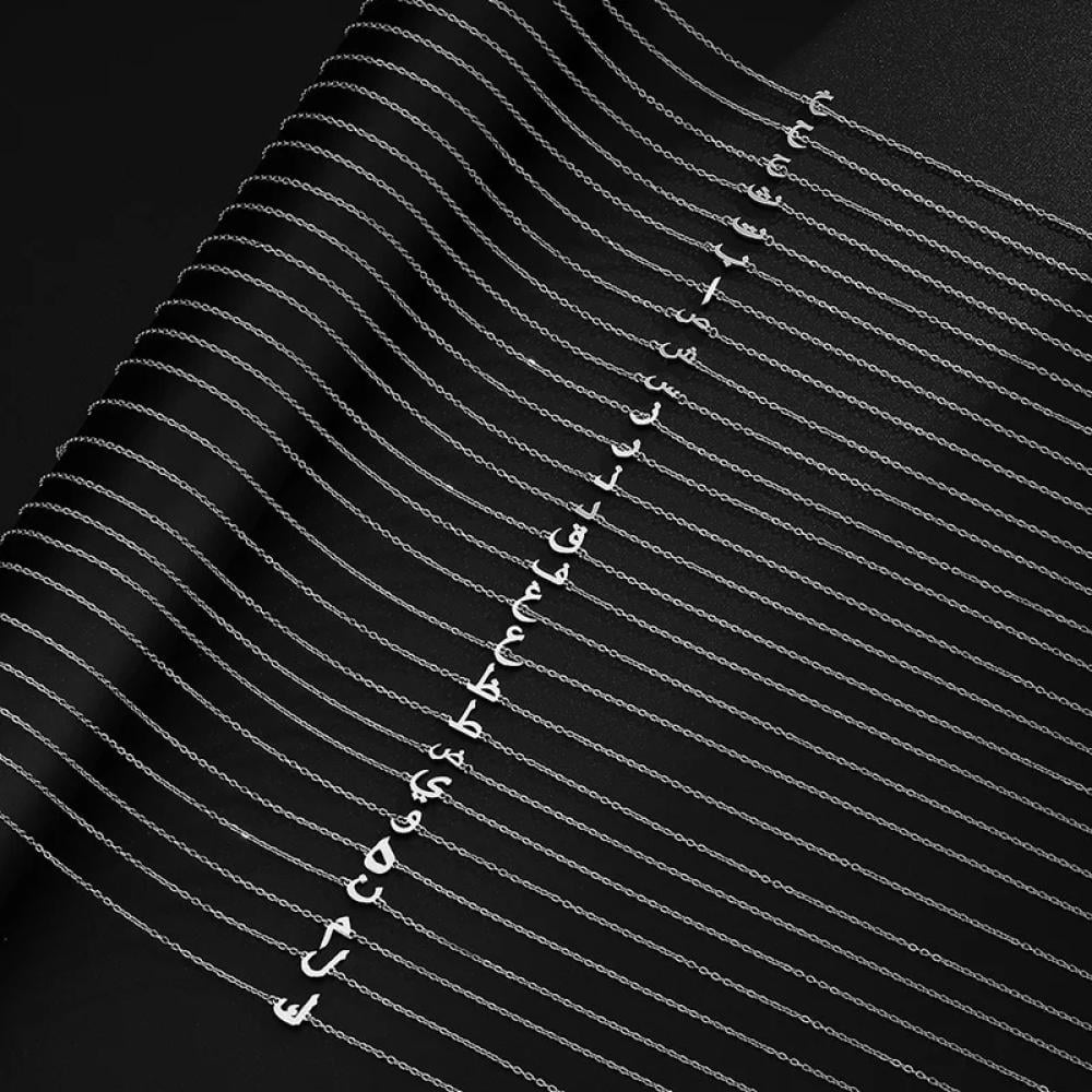 قلادة فضية اللون من الفولاذ المقاوم للصدأ بحروف أبجدية عربية مجوهرات للنساء اسم مسلم